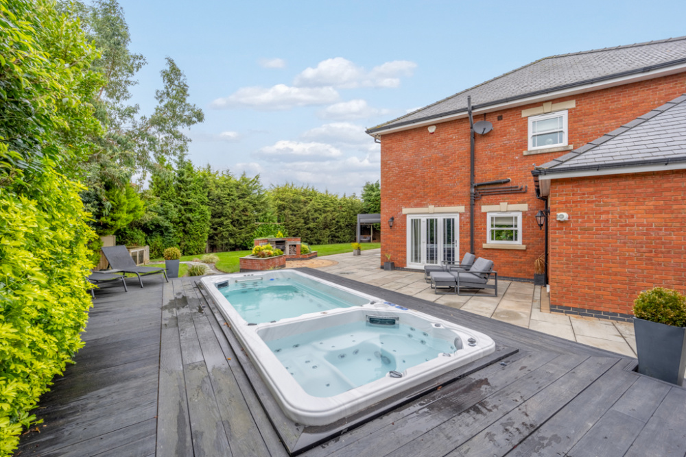 * Paved Parking Area with Private Rear Gardens with BBQ Area, Spa Pool, Garden Studio