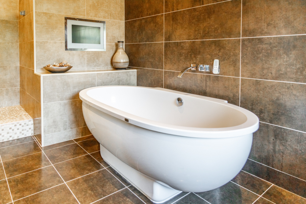Having bath, walk-in glass walled shower, dual fitted sinks, floor to ceiling chrome plated towel rail and Tile Vision TV.