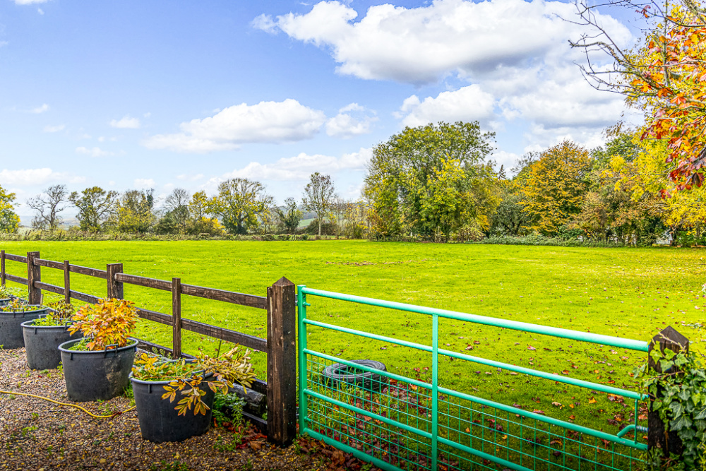 To the south of the stores is a 4 bar fence with gated access to the gardens and paddocks, having a variety of mature flower borders and mature trees adjoining the Conservation Area.