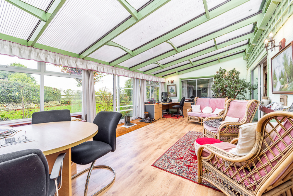 Westaway is a large detached bungalow benefitting from replacement windows, oil fired central heating, having 4 bedrooms, master en-suite and 3 reception rooms. It sits in formal gardens which extend to a yard with useful agricultural buildings and a paddock extends to the rear.