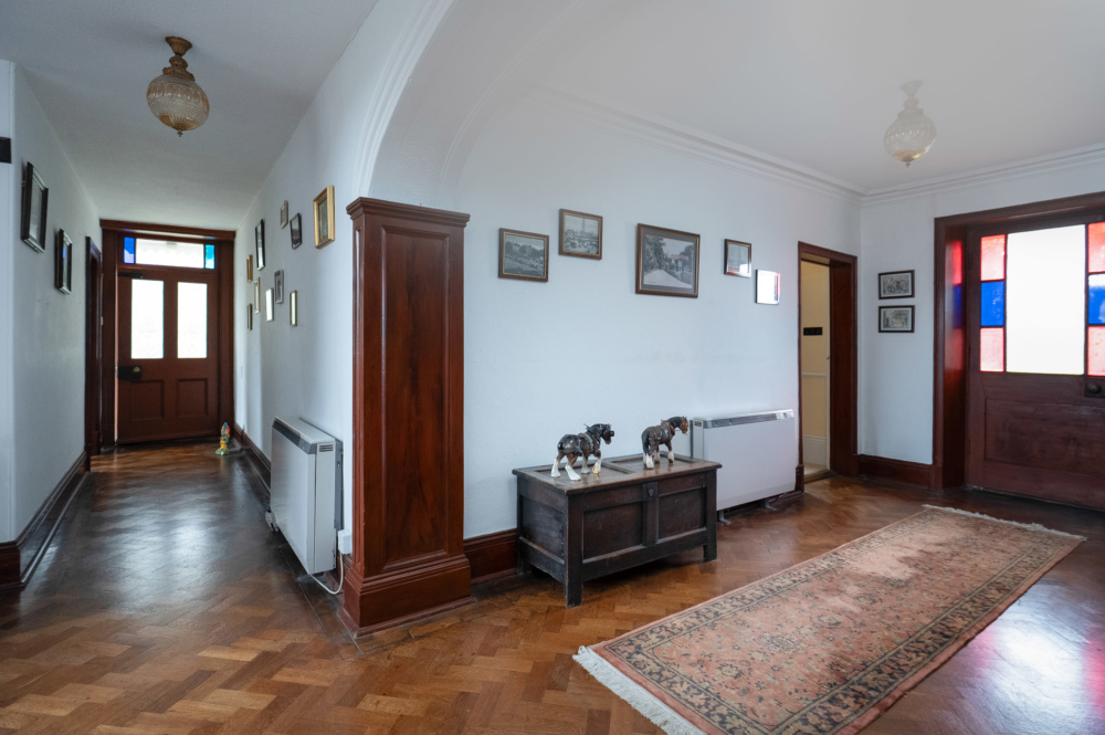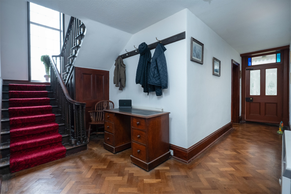 An impressive arched two storey window and original return staircase leads to a wide first floor landing.