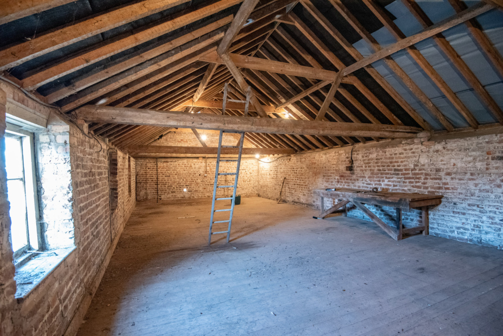 Steps lead from the workshop to the area over the stables forming a Granary………………………..12m x 5.6m, 67.2sqm